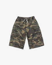 Based on classic military cargo pants, but in short form. Perfect baggy, below the knee fit, big cargo side pockets, and drawstring closure.
