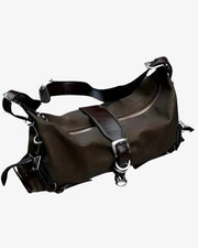 The perfect leather shoulder bag. Medium sized, belt inspired buckle closure, extra clasps on the side.